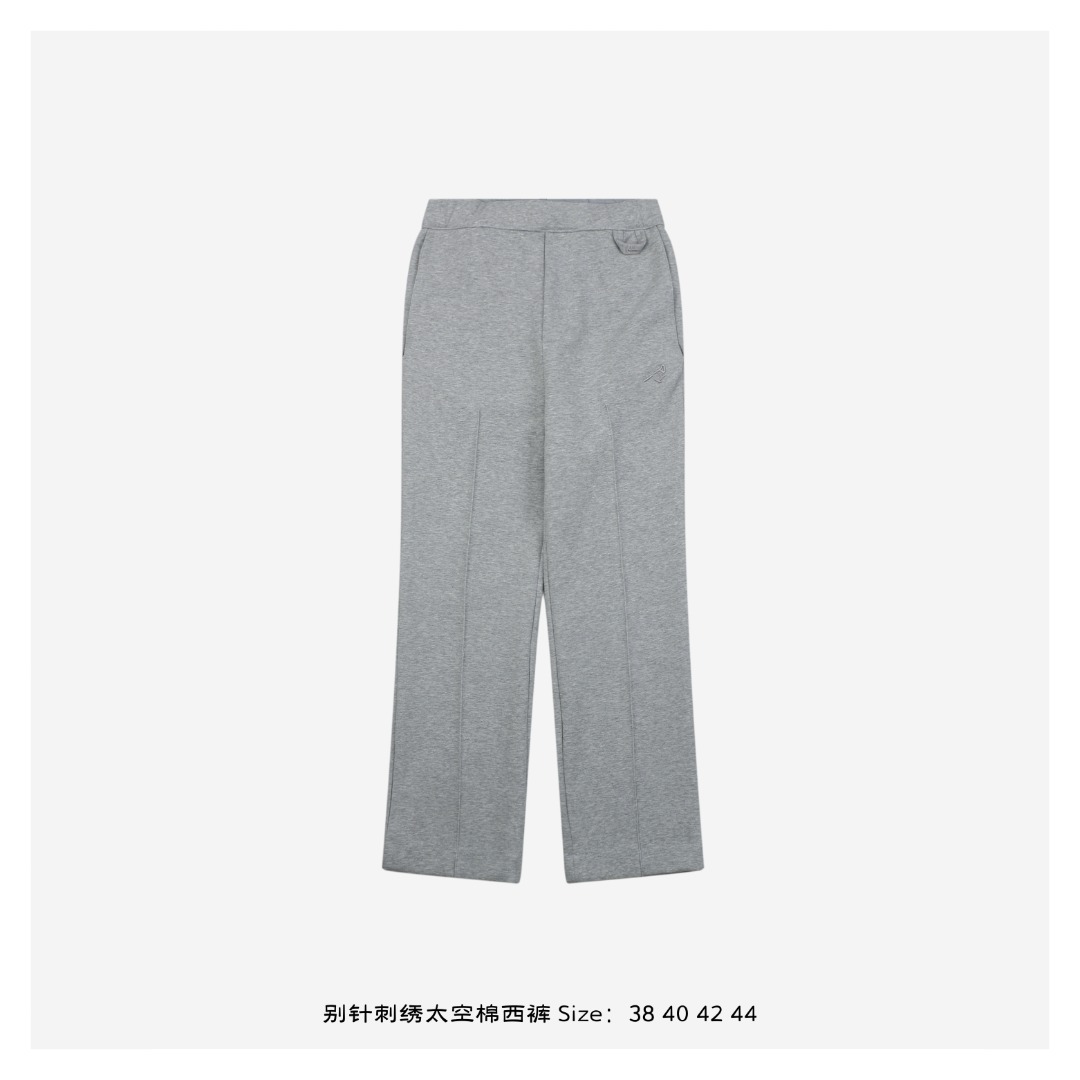 LV 25Fw 别针刺绣太空棉西裤,采用360克弹力太空棉与立体垫片刺绣工艺,通过倒三角廓形与别针细节设计,打造兼具商务质感与街头巧思的初秋单品。