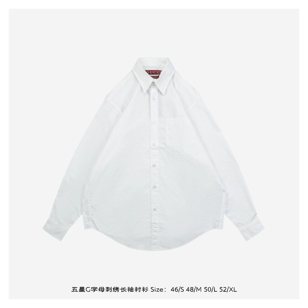 Gucci 25FW 五星G字母刺绣长袖衬衫,采用优质棉质面料与电脑精密刺绣工艺,胸前口袋与后背五星G字母设计兼具实用与装饰性,诠释现代男士的利落与不羁。