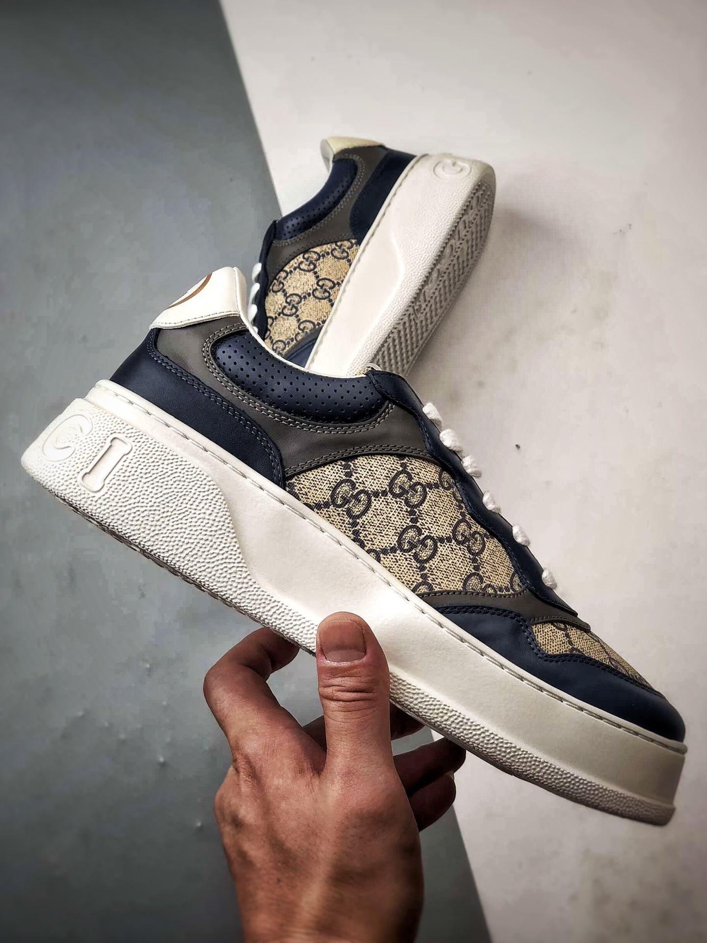 Gucci Chunky B Sneaker 深蓝,以厚底结构与GG帆布打造复古质感,搭配意大利进口小牛皮与超软橡胶大底,实现增高与舒适并存,市售最强版本同步专柜。