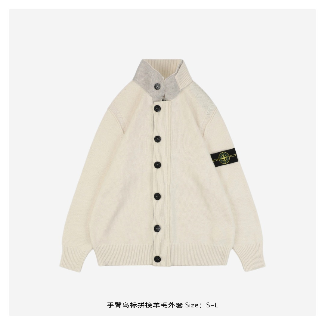 Stone Island/石头岛 25Fw 手臂岛标拼接羊毛外套,采用100%绵羊毛毛纱织造与定制五金纽扣,通过改良工艺提升亲肤感与透气性,打造兼具舒适度与标志性设计的奢华单品。