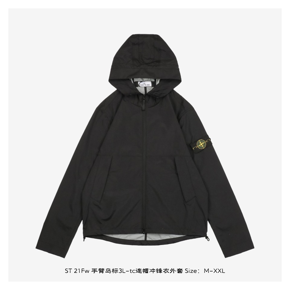 Stone Island 21Fw 手臂岛标3L-TC连帽冲锋衣,采用3L-TC防水面料与繁琐帽体工艺,肩章刺绣金线绿线防伪细节,基础宽松版型百搭实用。