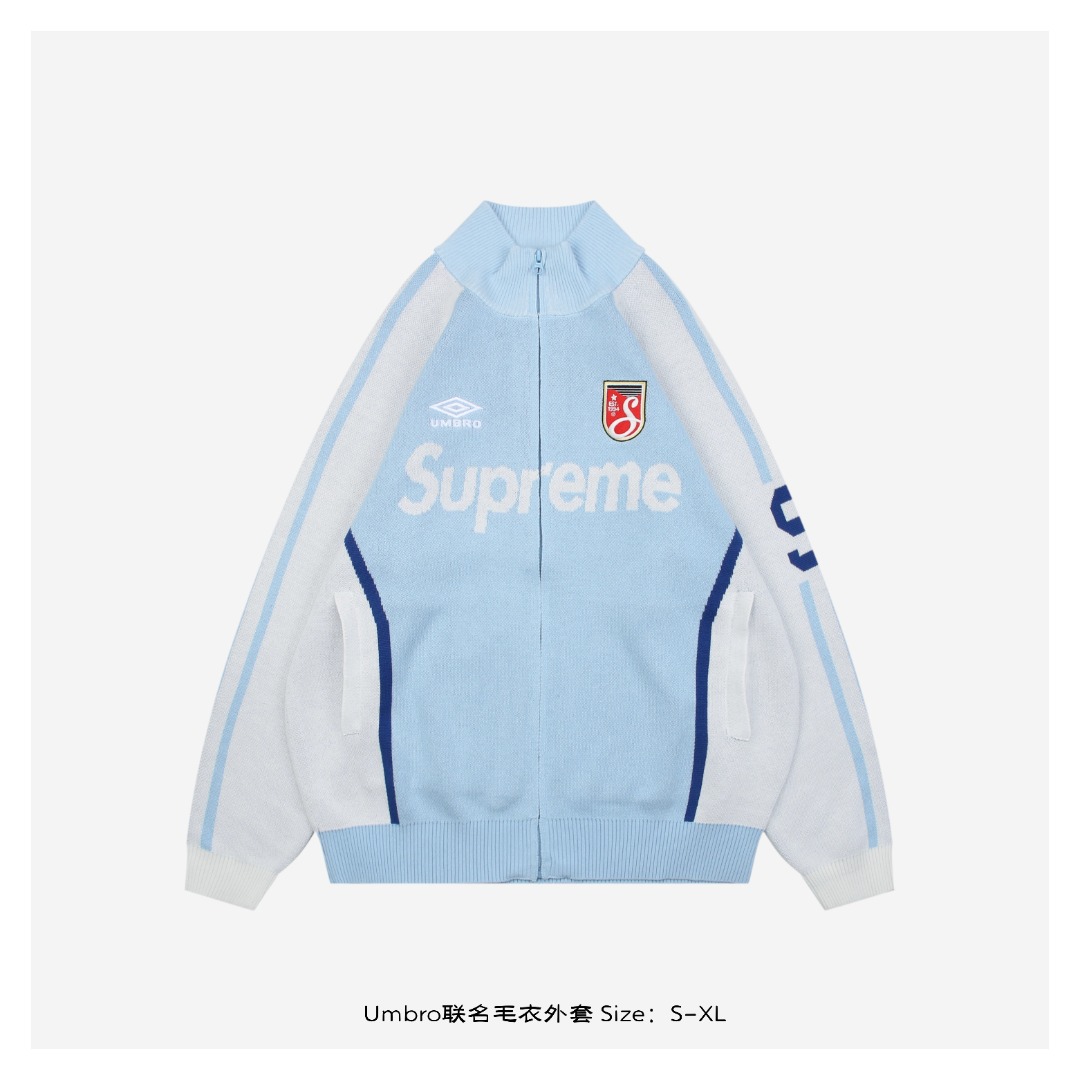 Supreme 25Fw x Umbro联名拉链毛衣,以球队俱乐部为灵感推出多款拼色,采用厚实面料与百灵达进口机立体刺绣,原版样衣重金开发,完美复刻官方细节。