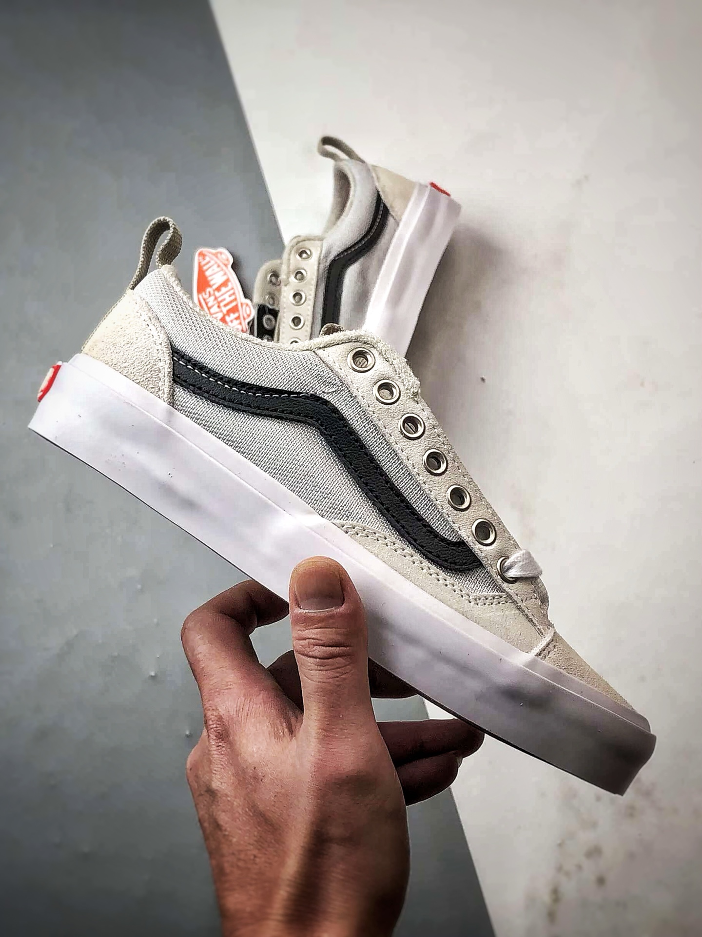 Vans Skate Old Skool 36米白配色,采用加厚鞋舌、缩短鞋头与侧边麂皮加固设计,优化版型与耐磨性,兼具经典外观与专业滑板性能。