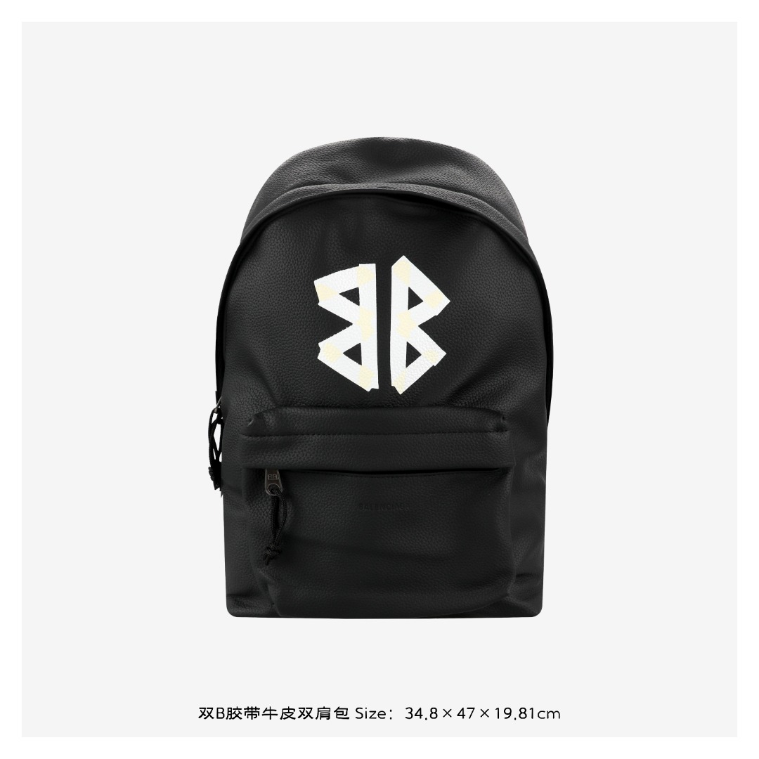 巴黎世家双B胶带牛皮双肩包,混合小牛皮与尼龙材质,尺寸34.8厘米,风格前卫实用。