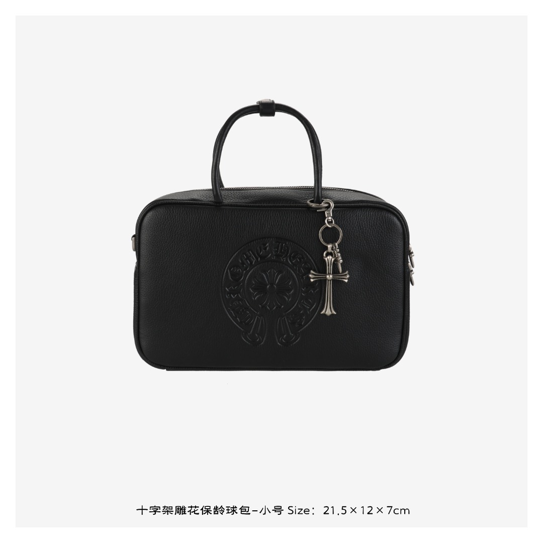 克罗心保龄球包采用意大利进口头层牛皮与手工刷黑泰银五金,十字架雕花复古精致,日常百搭。