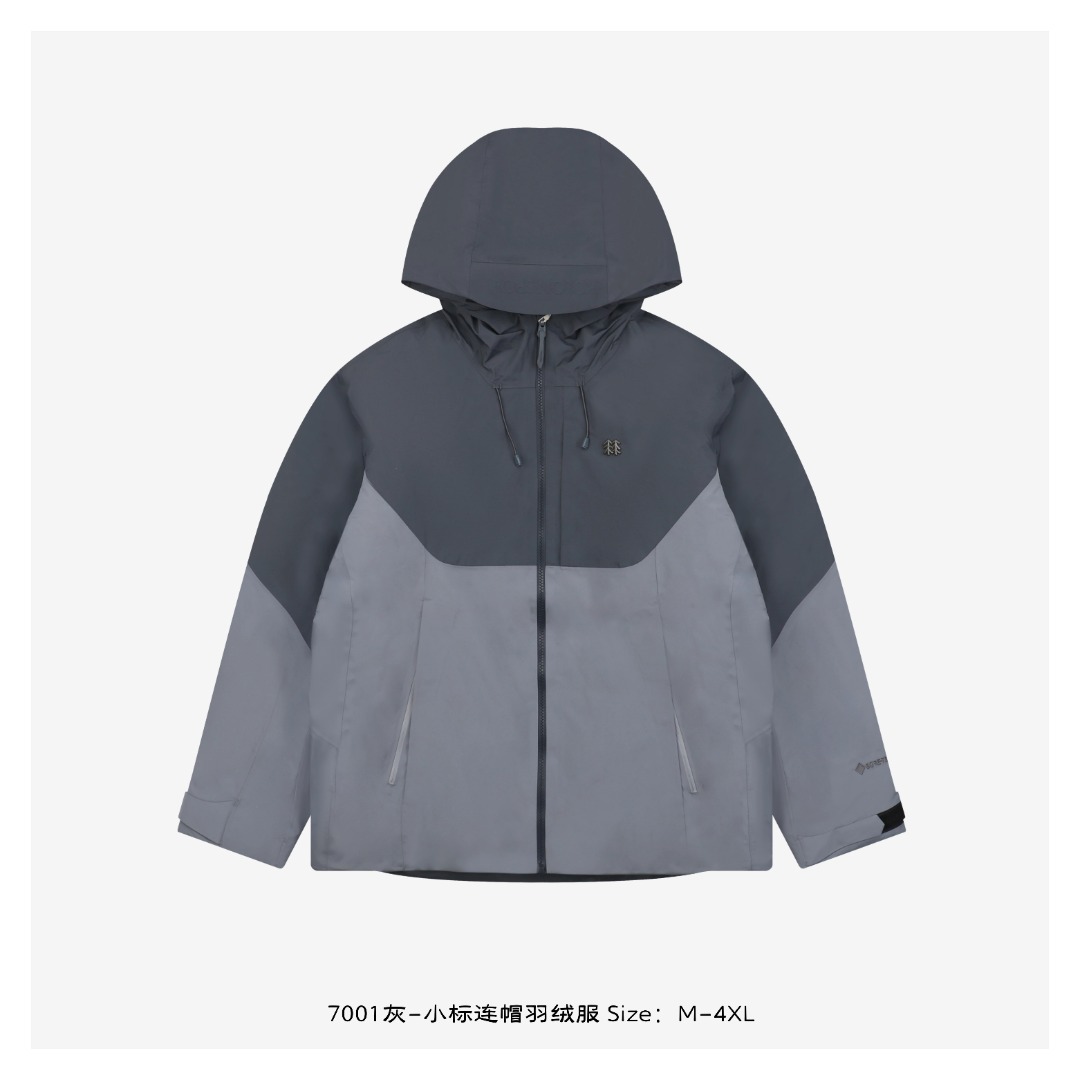Kolon 小标连帽羽绒服为都市优化的轻户外款,采用3L GORE-TEX面料与白鸭绒填充,优化舒适度与防护平衡。
