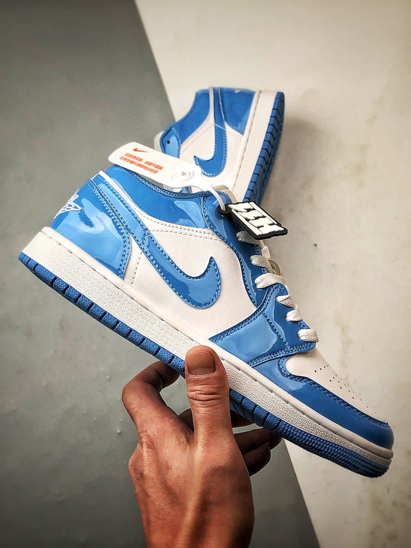 AJ1 Low白蓝漆皮配色,由大厂纯原出品,采用Prime Asia原厂漆皮皮料与3D高频立体飞翼,匹配率高达98%,原装模具大底。