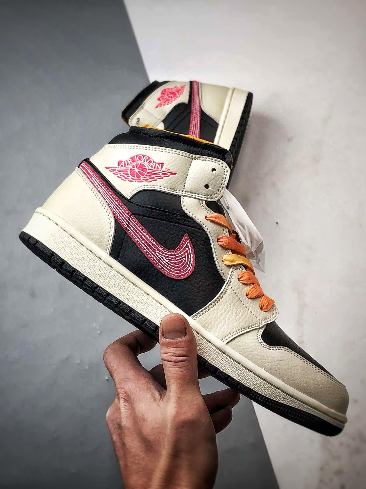 AJ1 Mid米黑粉配色,全新批次采用原厂定制皮料与正确折边工艺,搭配原装原模大底,细节完美。